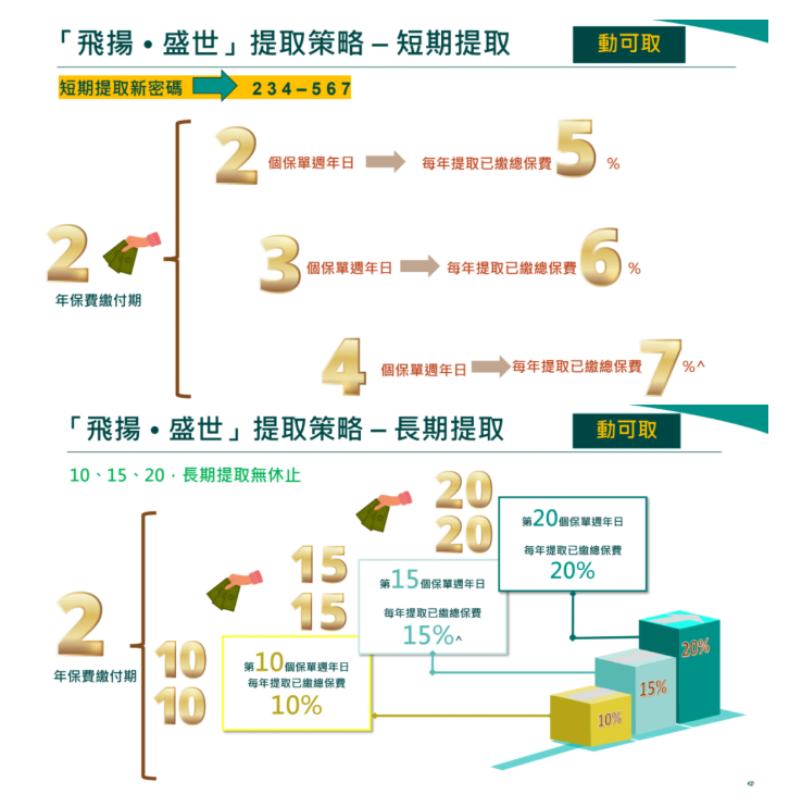 "动可取":从第2个保单周年日起,每年提取总保费的5%,作为稳定现金流。