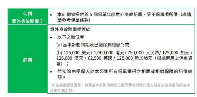 4.意外身故额外赔付: