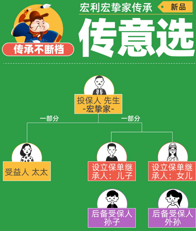 支持灵活变更受保人,将保单权益无缝传递给下一代,让财富增长周期跨越代际限制,实现“一份保单,世代受益”的传承目标。